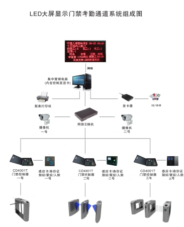 主要由計(jì)算機(jī)/打印機(jī)、智能讀卡器、智能控制器、攝像機(jī)、視頻服務(wù)器、智能閘機(jī)、智能卡及管理軟件等組成。采用TCP/IP網(wǎng)絡(luò)結(jié)構(gòu)通訊,通訊距離可無限擴(kuò)展,單臺(tái)計(jì)算機(jī)可接任意數(shù)量智能閘機(jī)。智能閘機(jī),既可聯(lián)網(wǎng)運(yùn)行,又可脫機(jī)運(yùn)行。系統(tǒng)組成圖如下: